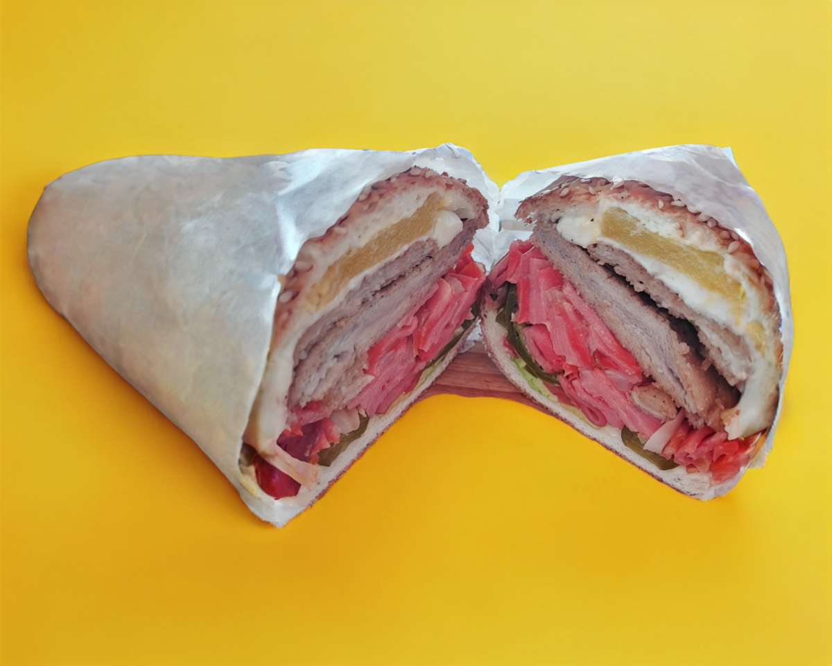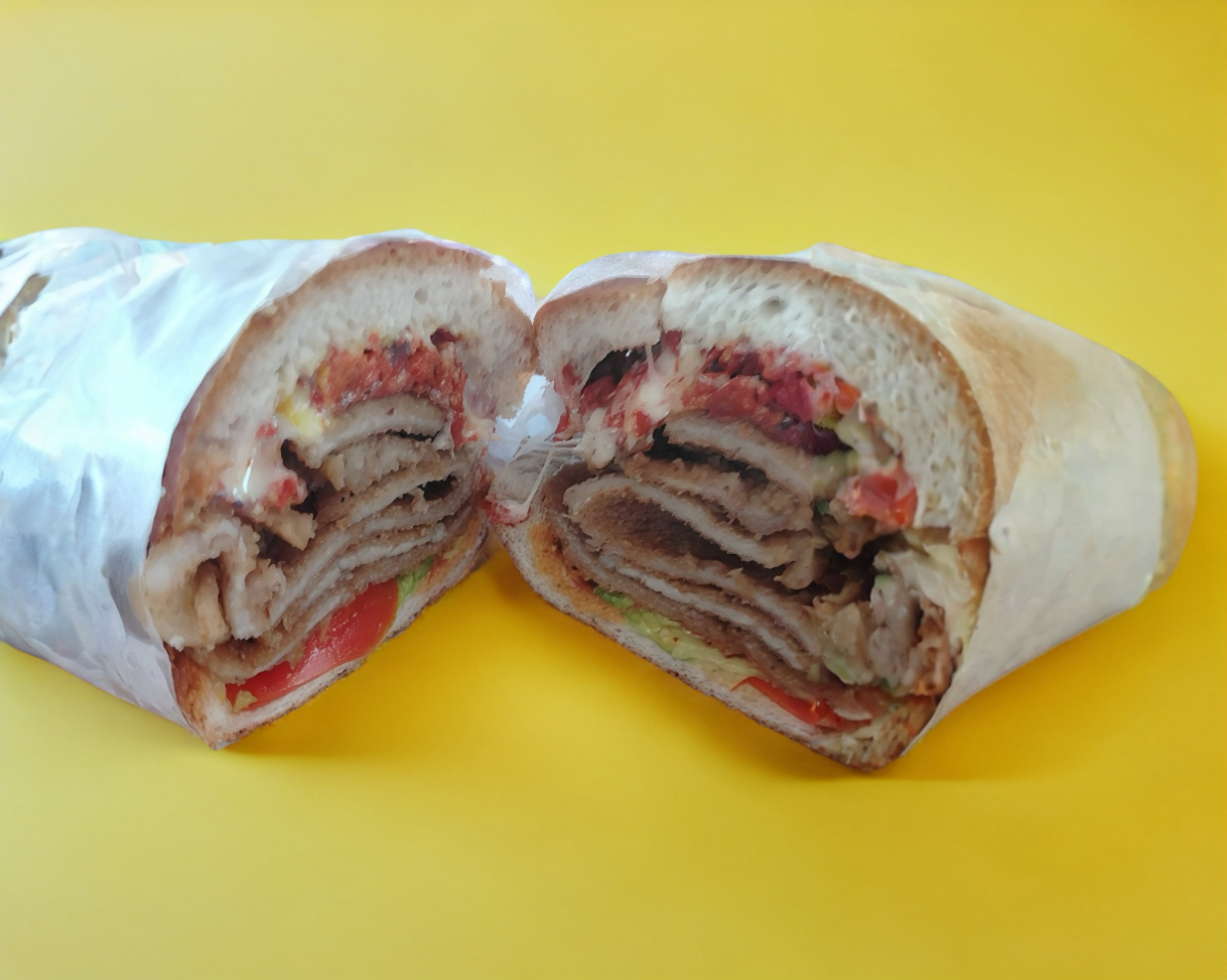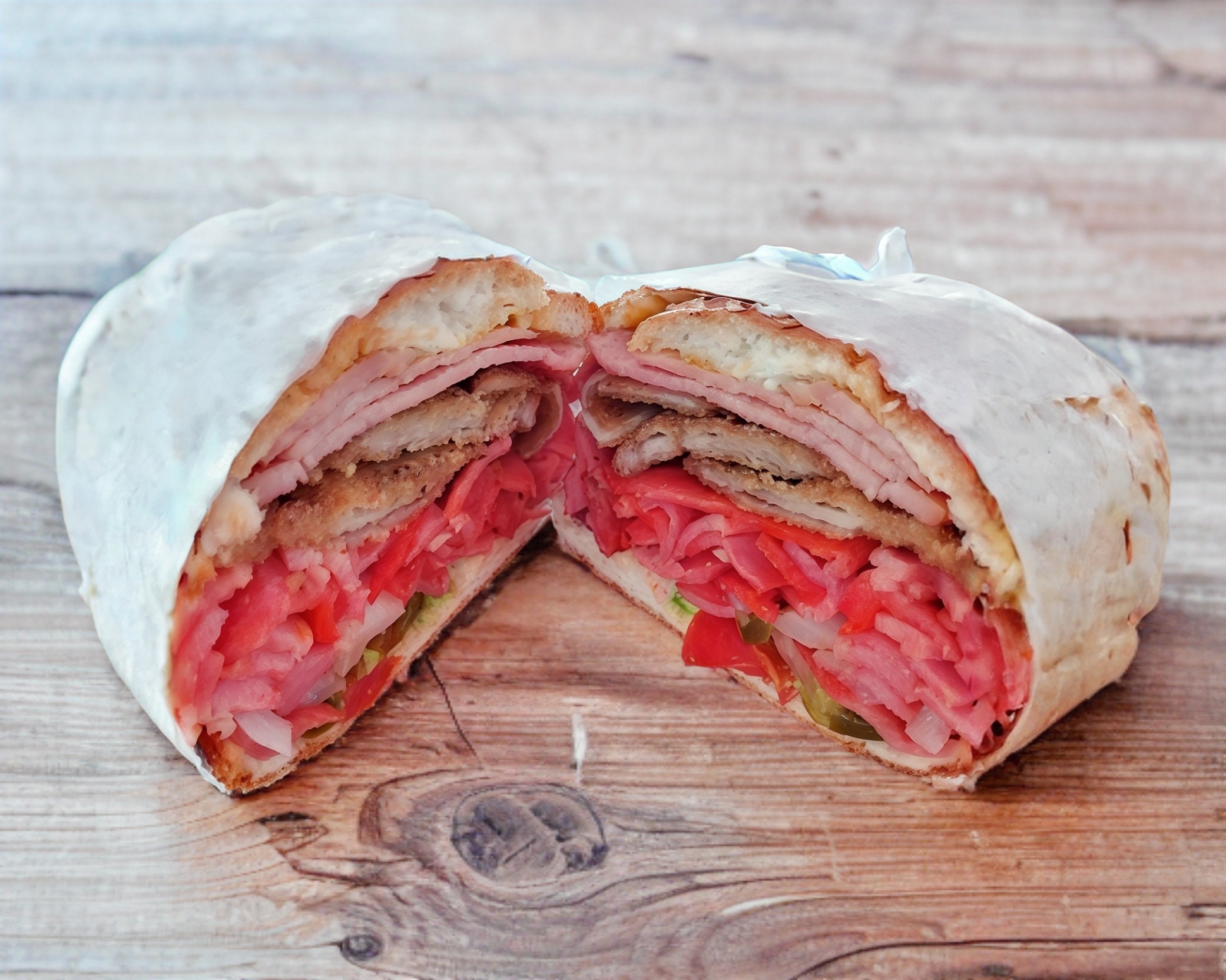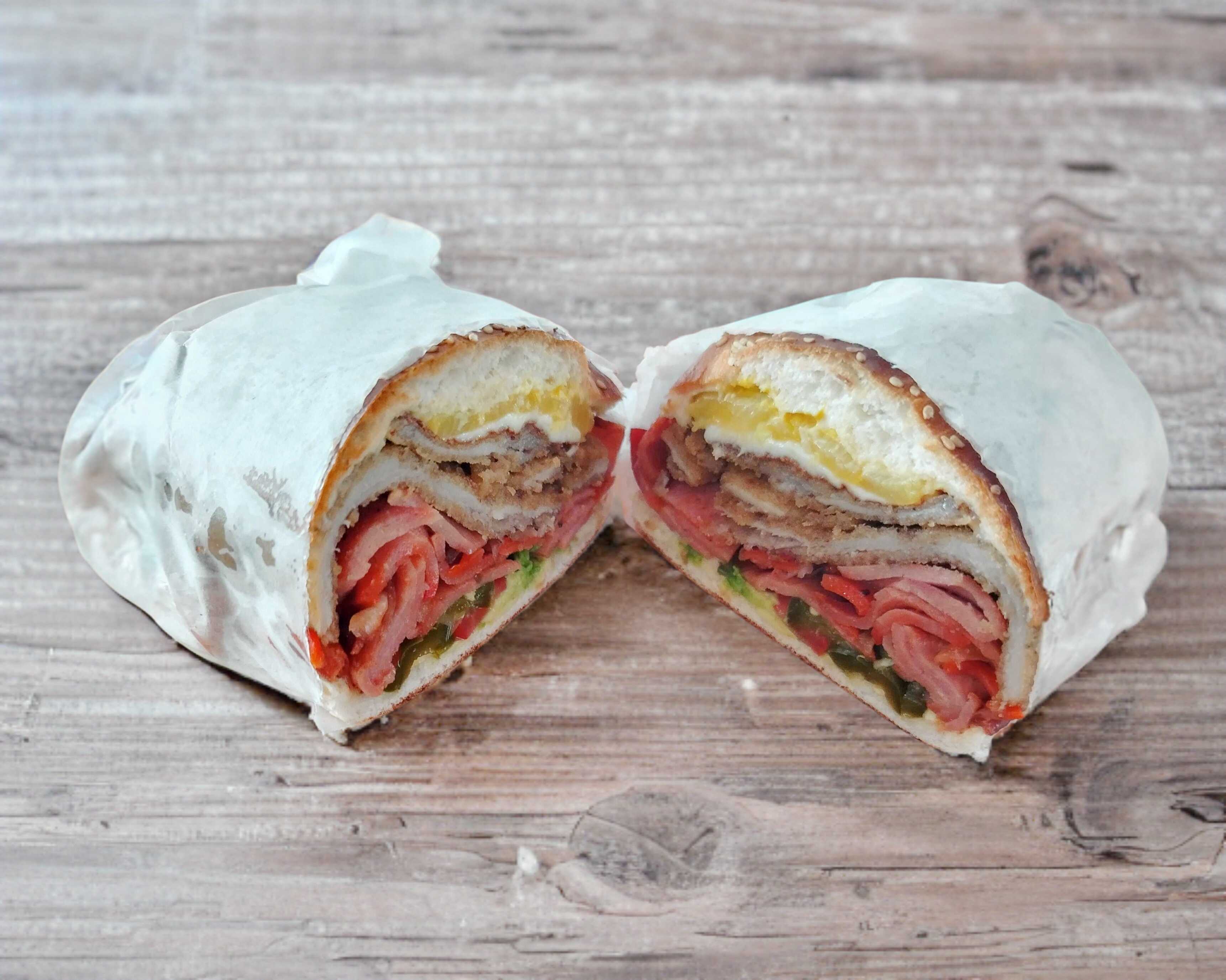 Deliciosa torta de milanesa, pierna, chuleta y chorizo picante a elegir rajas o chipotle