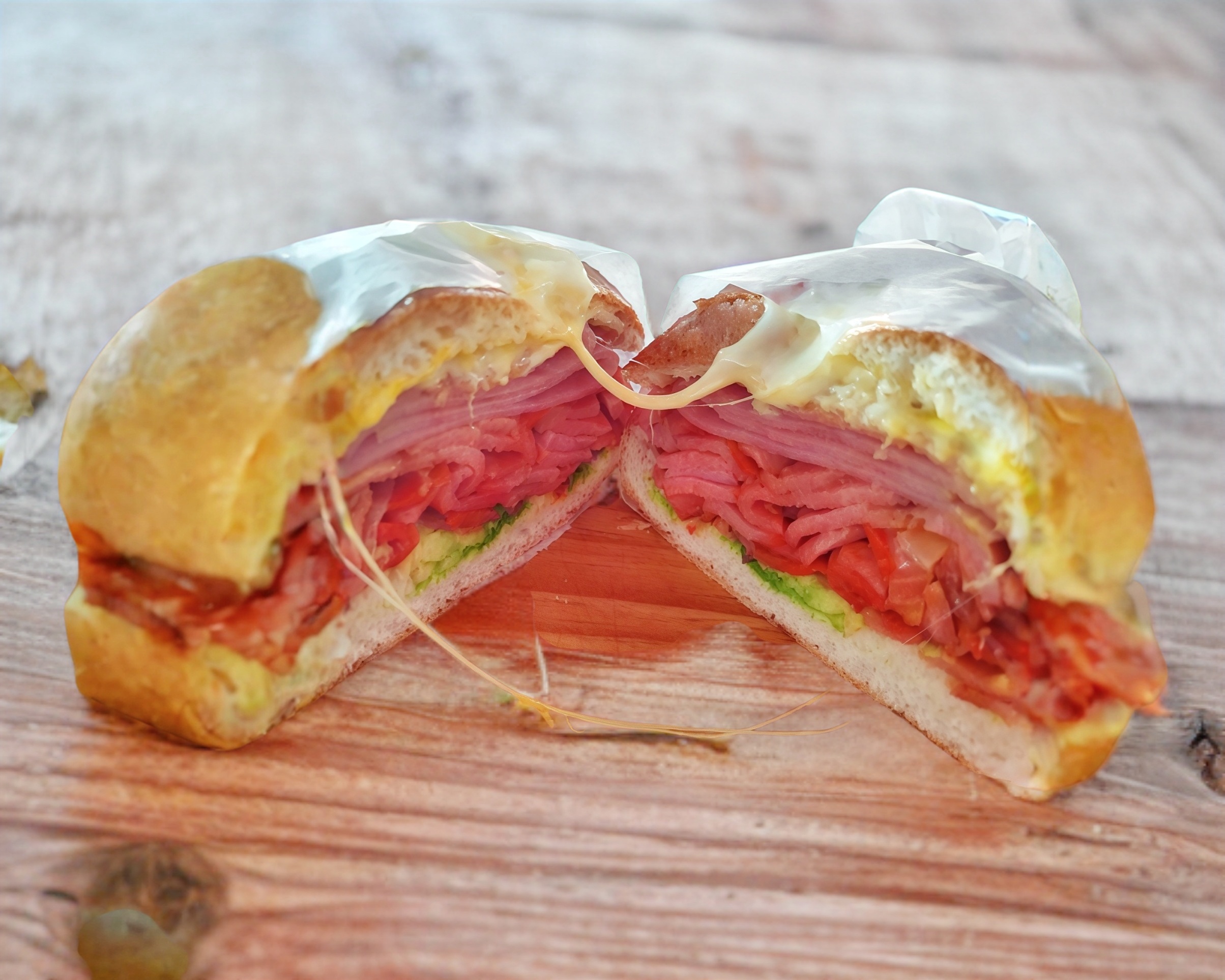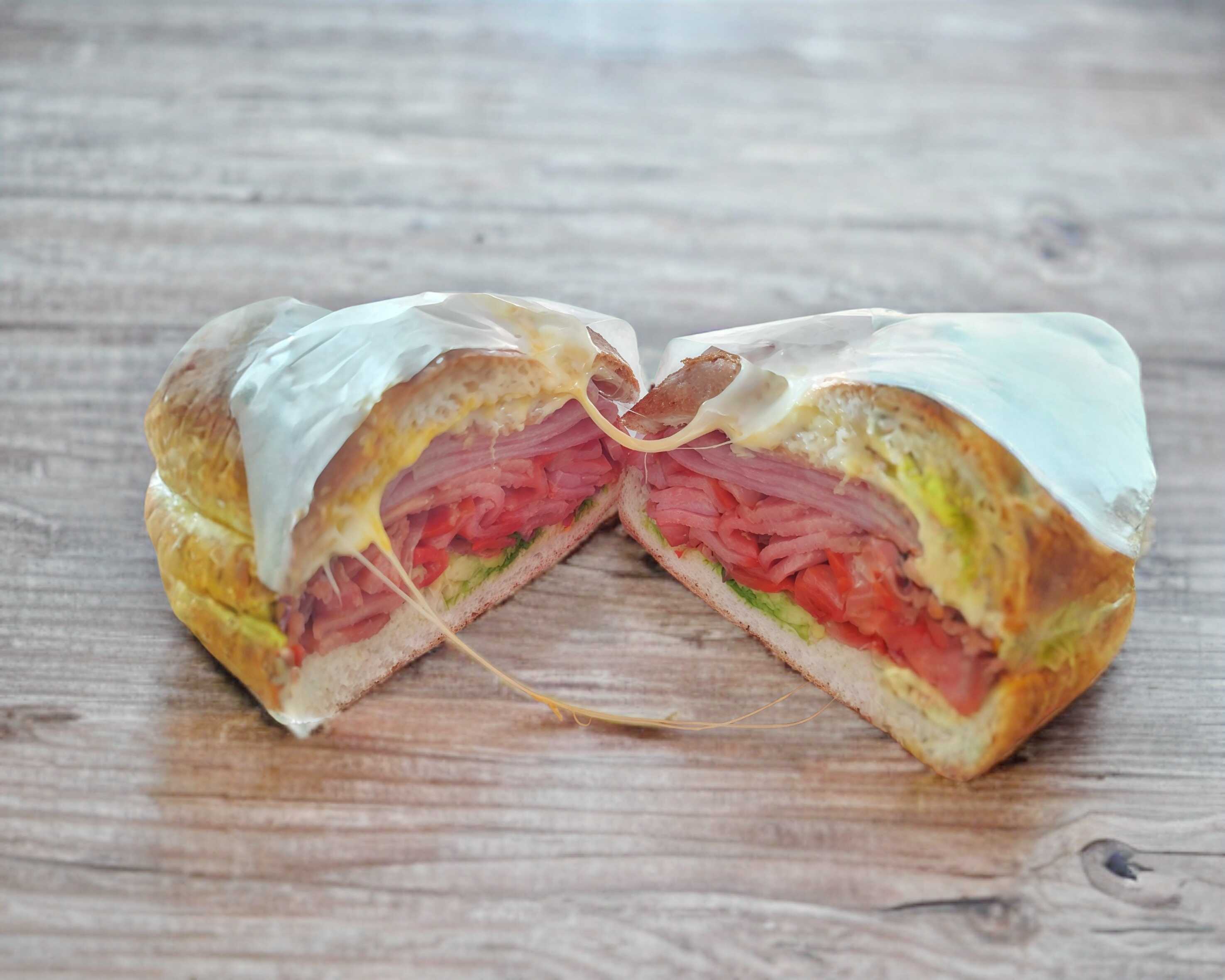 Deliciosa torta de jamón, queso amarillo y quesillo picante a elegir rajas o chipotle