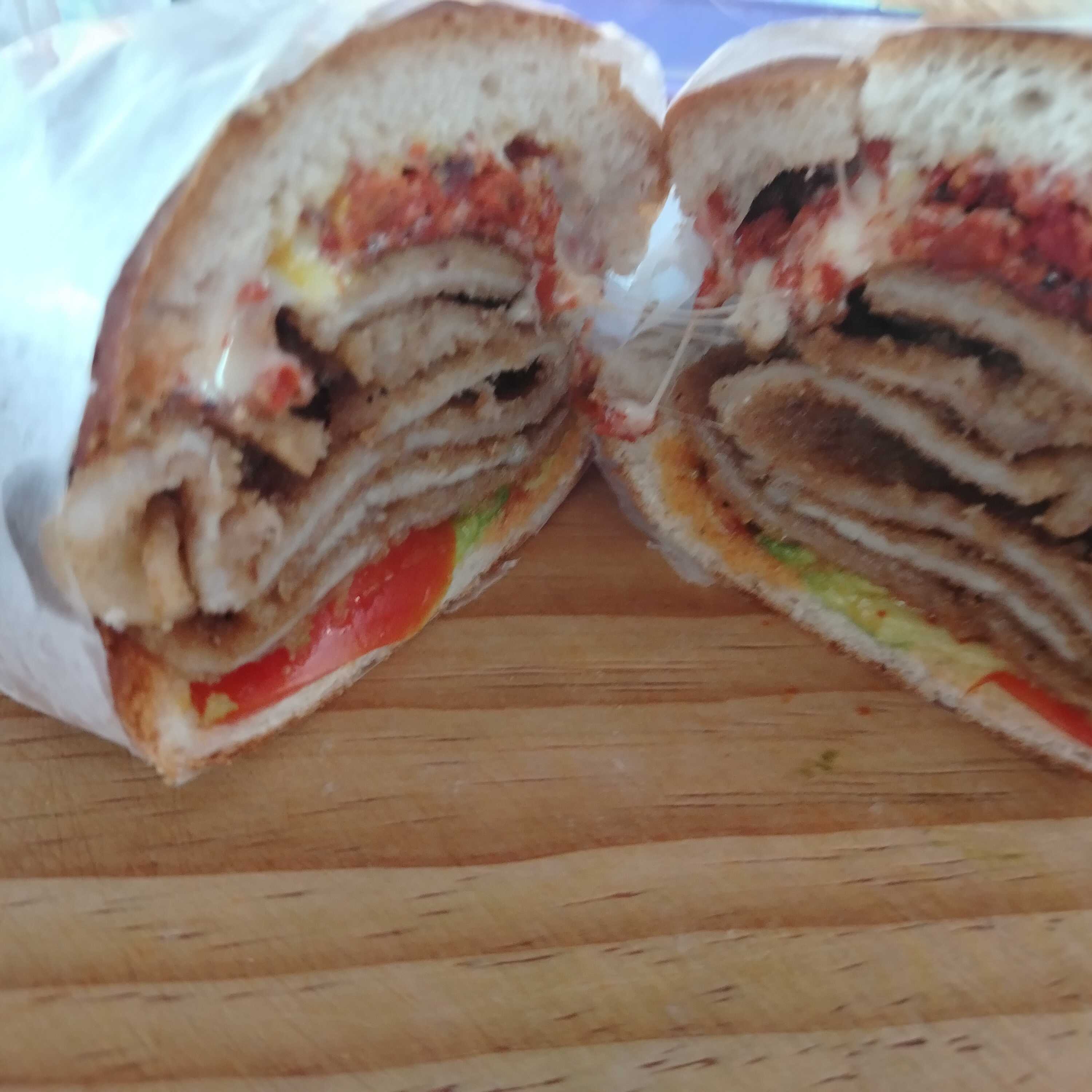 Deliciosa torta de milaneza, pierna y quesillo picante al gusto rajas o chipotle