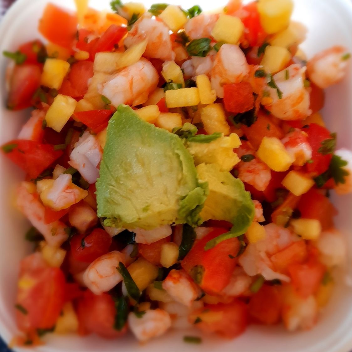 CAMARÓN CON PIÑA, JITOMATE Y PEPINO