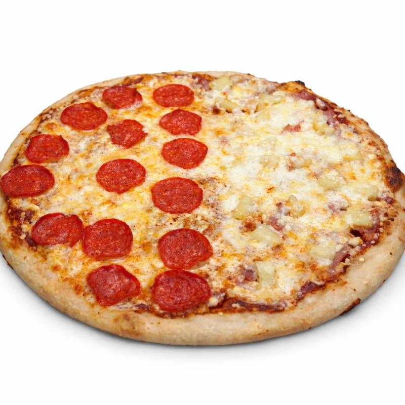 Pizza 35 cm, 8 rebanadas mitades a elegir en pizzas clasicas