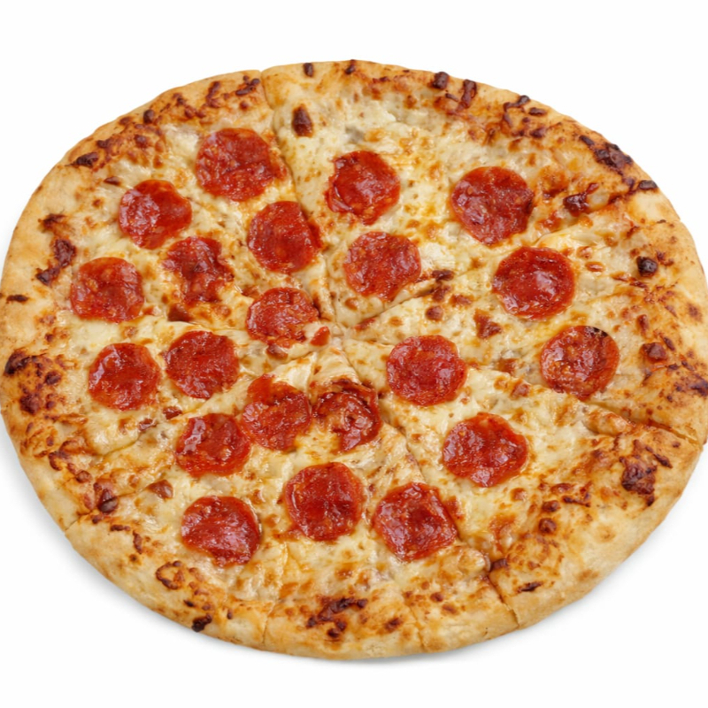 Pizza de 30 cm con 6 rebanadas. Salsa de tomate, queso mozzarella y pepperoni