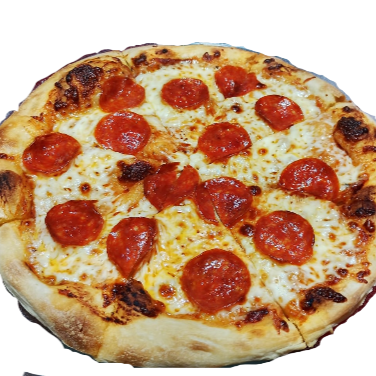 Pizza de 35cm con 8 rebanadas, Salsa de tomate con especias, queso mozzarella y pepperoni