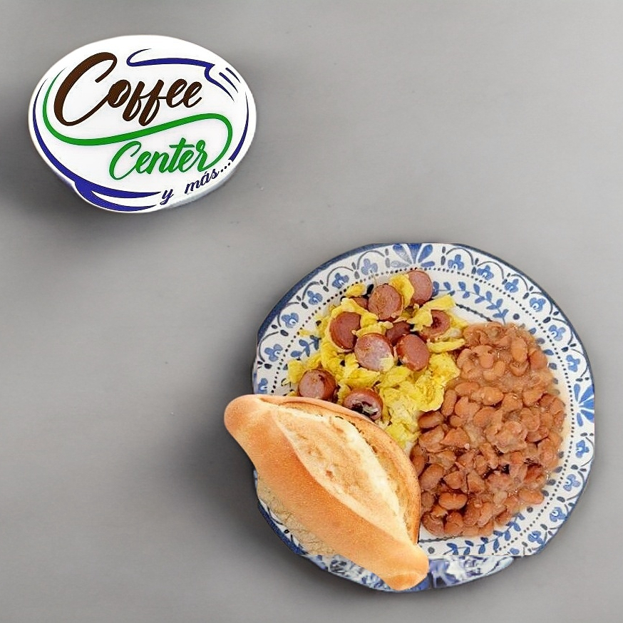 Huevos al gusto con salchicha y tocino. Acompañados de pan o tortilla y frijoles.