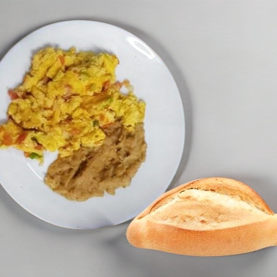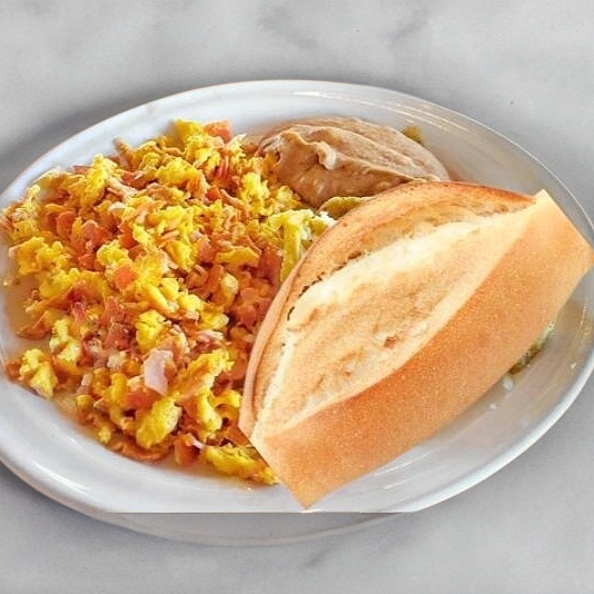 Huevos a la mexicana . Acompañados de pan o tortilla y frijoles.