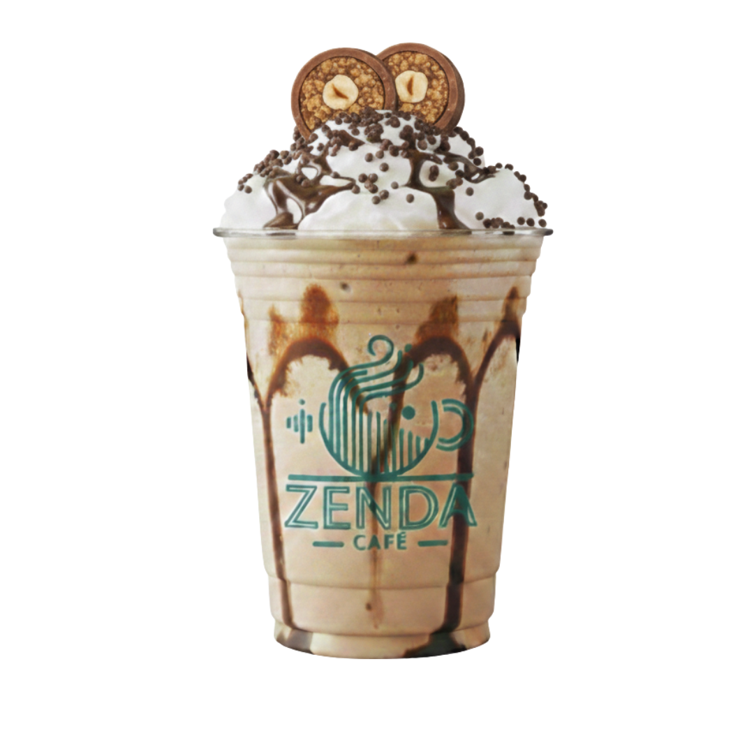 Deliciosa malteada preparada a base de Ferrero, con crema batida y toppings de Ferrero