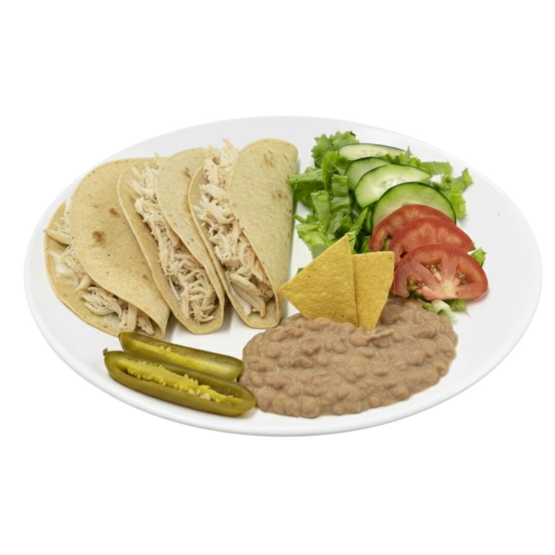 3 quesadillas calientitas con queso derretido, pollo, frijoles y ensalada para acompañar