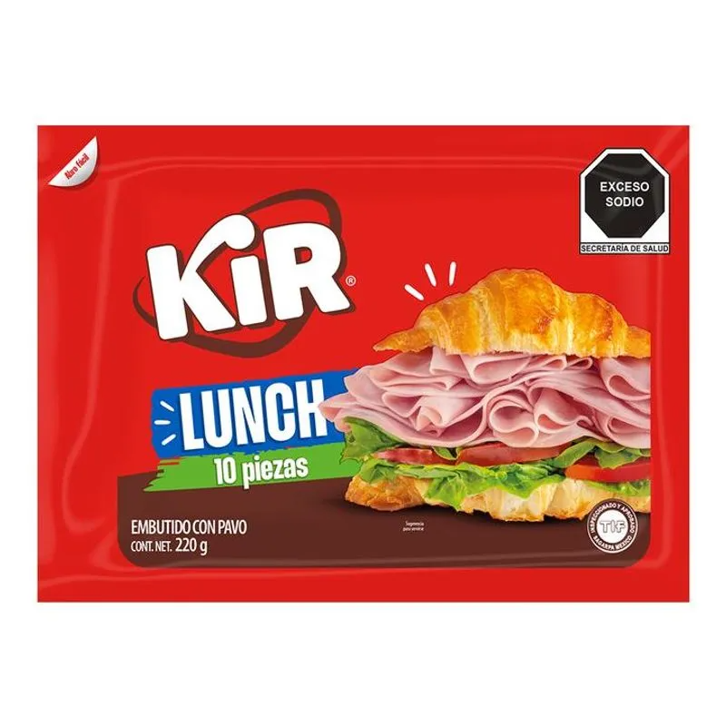 Paquete de jamón de pavo de la marca kir, contiene 10 piezas o 220 gramos de producto