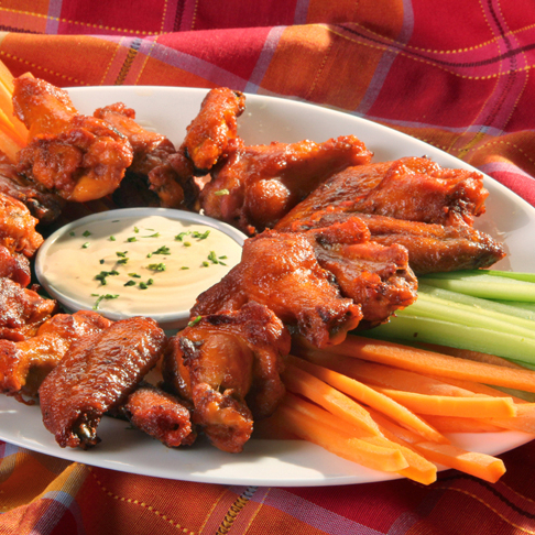25 alitas, 6 dedos de queso, 10 aros de cebolla, 3 salsas a elegir, papas, vegetales y 4 aderezos