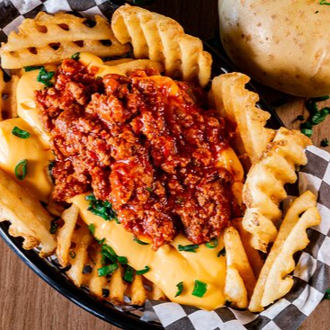 Deliciosas papas crisscut acompañadas de aderezo ranch, queso cheddar y parmesano