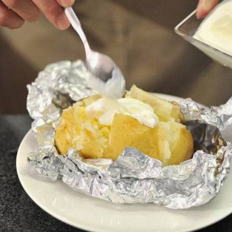 Papa asada con mantequilla derretida.