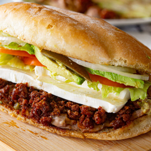 Pan de torta con arrachera de res.