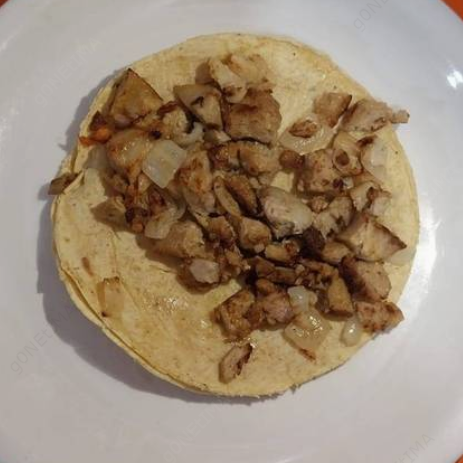 Queso fundido con de chuleta más tortilla de harina.
