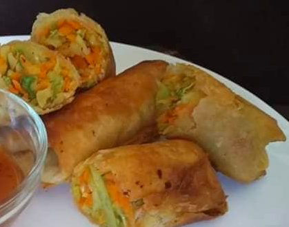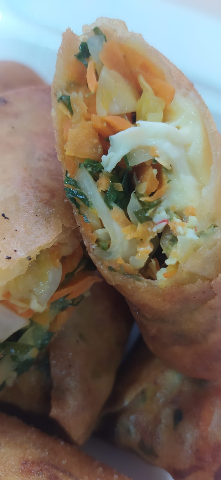P/F enpanizado, P/D pollo enpanizado, zanahoria, pepino, queso crema y aguacate (incluye 1 salsa de soja)