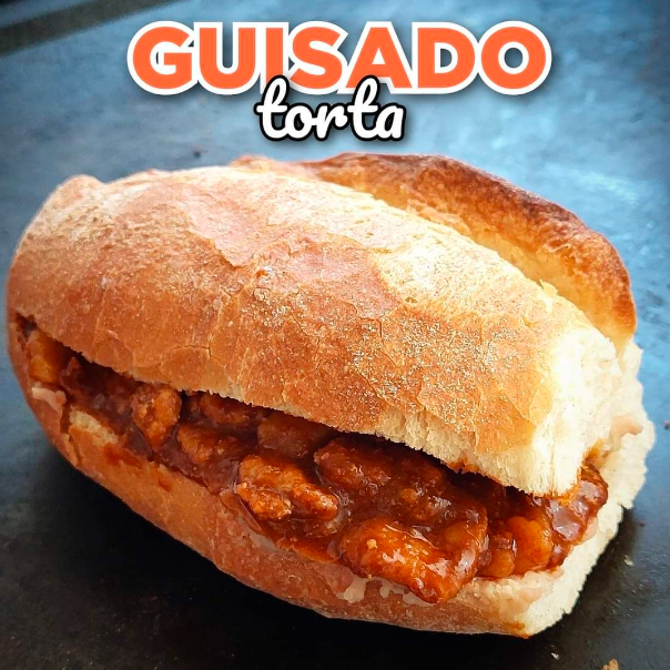 riquisima torta ahogada en una rica salsa calientita de arbol (con la que se baña)(se pone aparte), con cilantro, cebolla y salsa apart