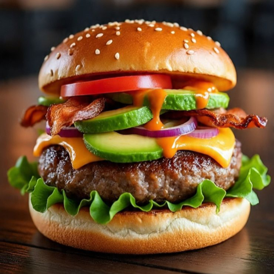 CARNE, TOCINO, QUESO, QUESO, LECHUGA, AGUACATE