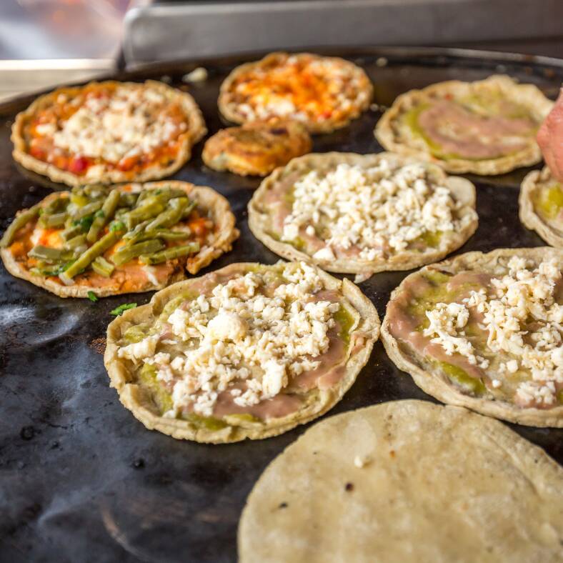 Huarache de maiz relleno de chicharron, frijokes y queso asadero