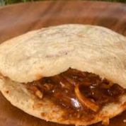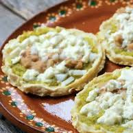 Sope de maiz relleno de cachete con cebolla, cilantro, queso y crema