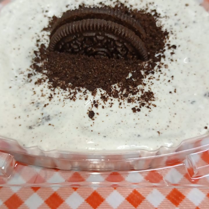 Galletas oreo contiene, queso crema, media crema, lechera ,chocolate blanco, galleta molida,