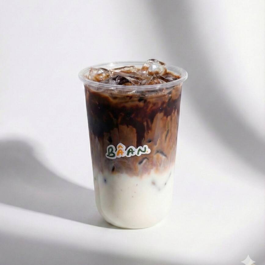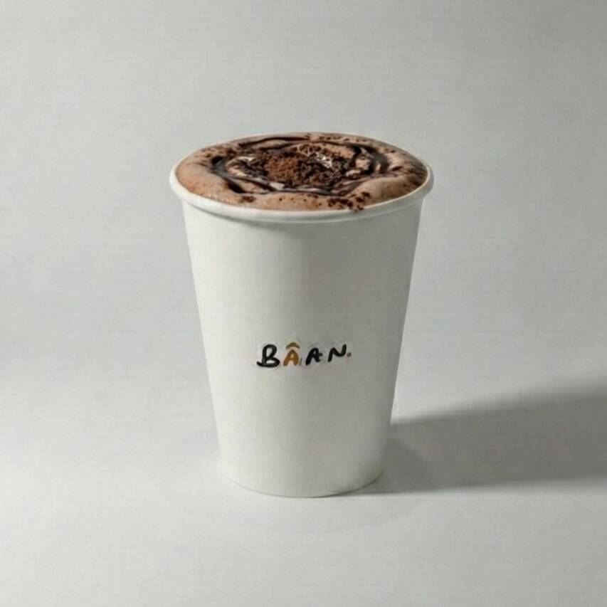 Cocoa puro (100%) y espresso moka. Endulzado jarabe simple, leche evaporada y leche deslactosada.