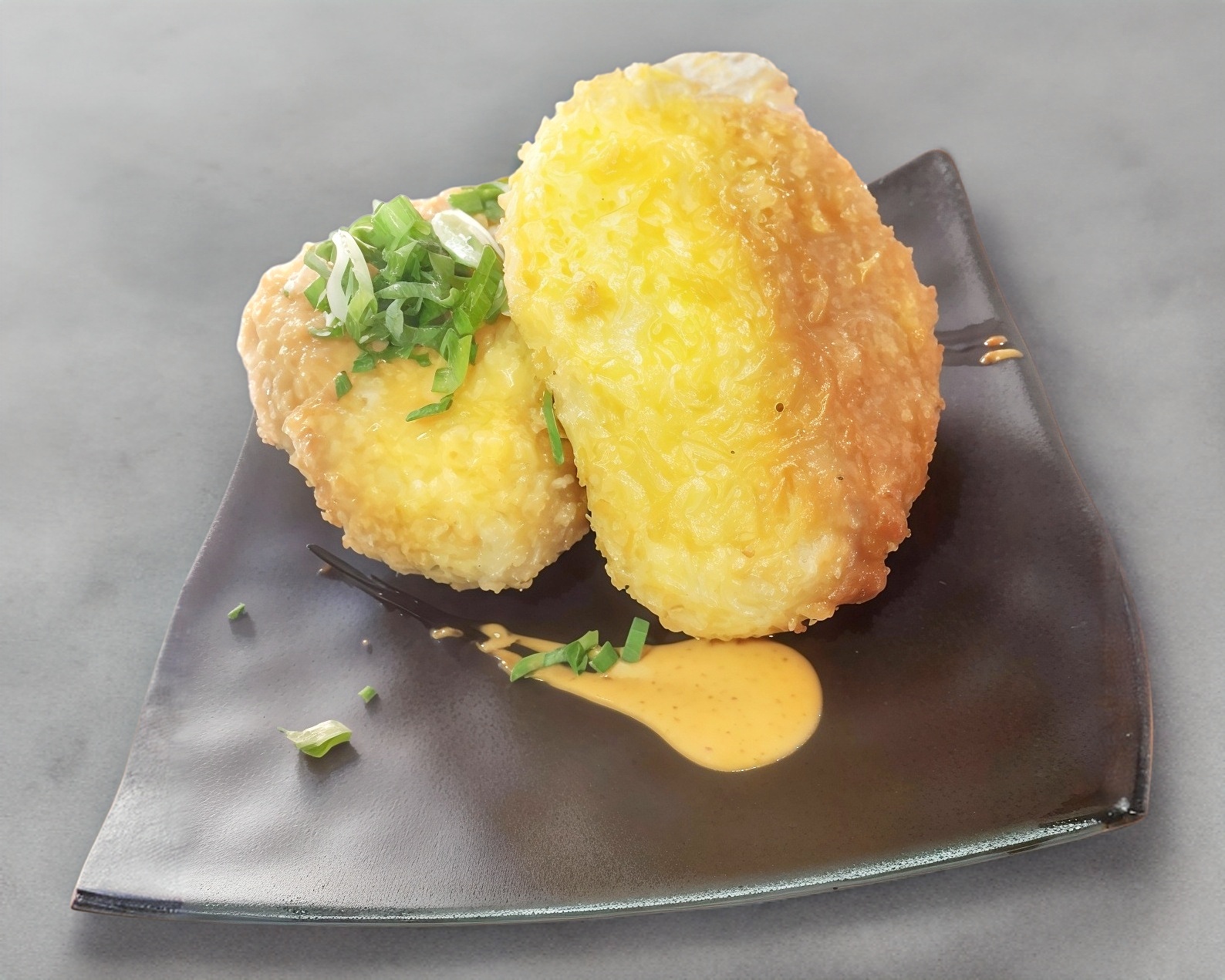 Relleno de arrachera, queso gouda, aguacate, cubierto de mayo chipotle y cebollín.