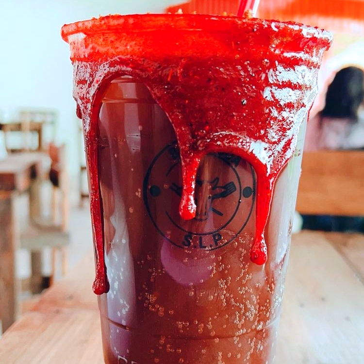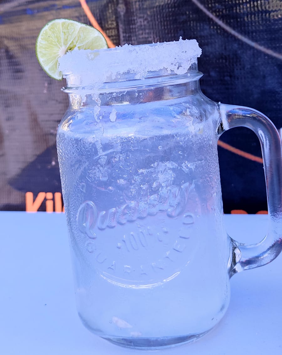 Cerveza sin clamato, salsa inglesa, magui, limon, chile en polvo.