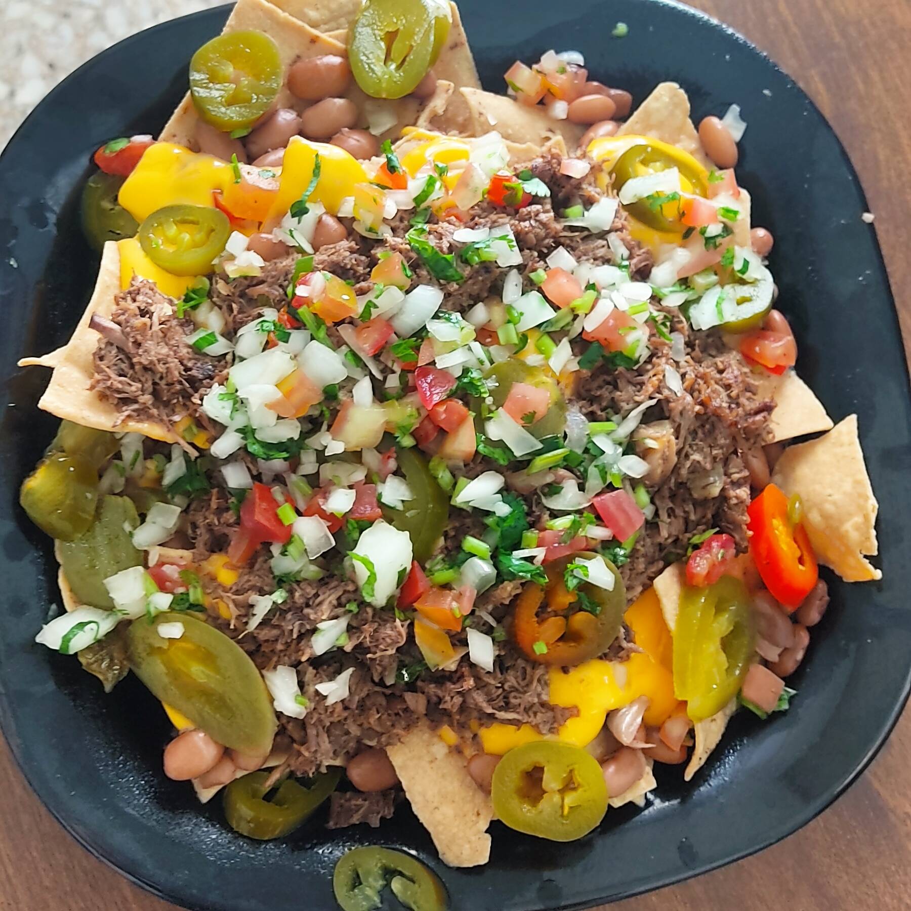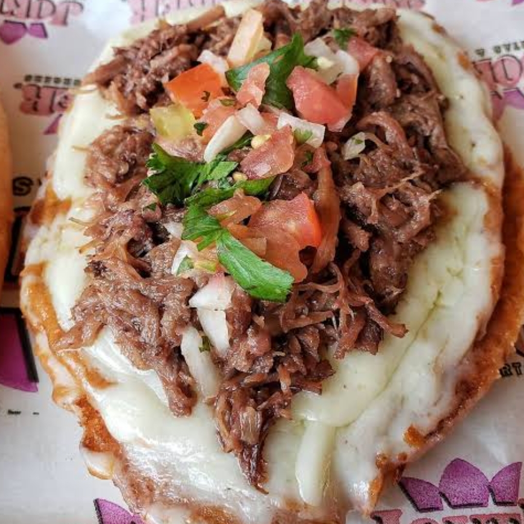 Orden de 2 pzas de pan con frijoles, BarbacoaSLP, queso gratinado y pico de gallo.