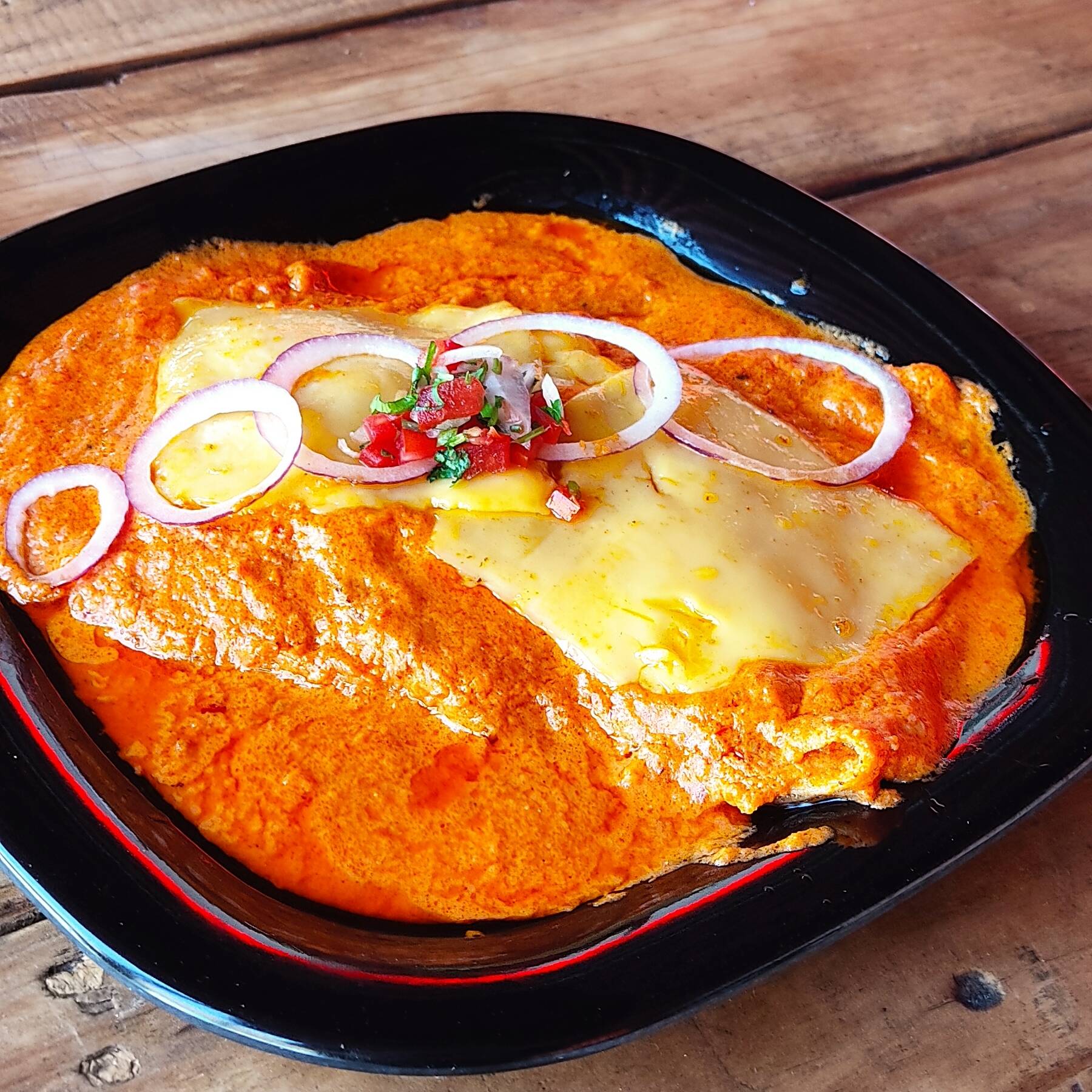 5 pz de enchiladas acompañadas de frijoles, crema, queso y aguacate con BarbacoaSLP.