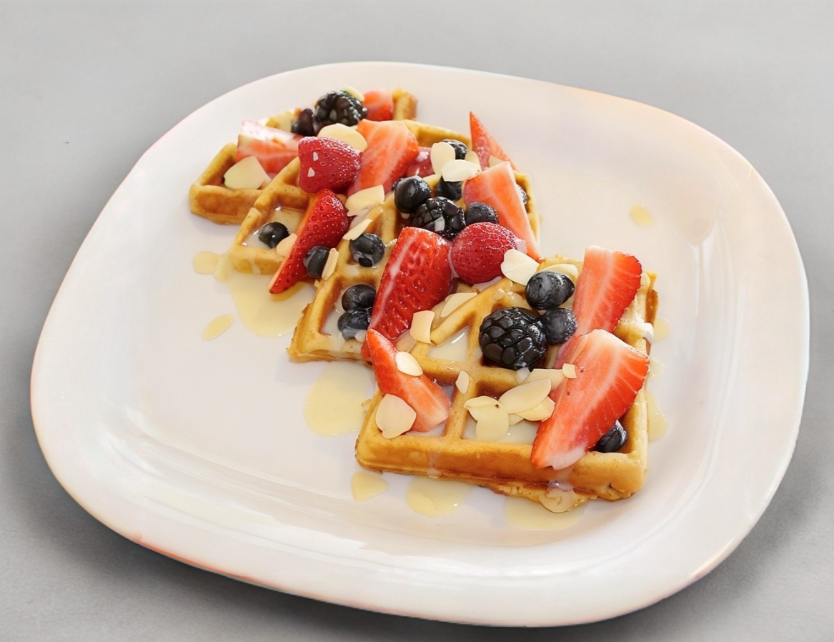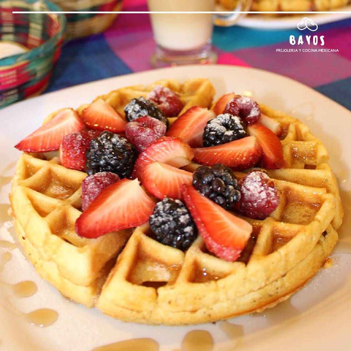 Deliciosos waffles (2 pz) con miel maple, acompañados de tus ingredientes favoritos.