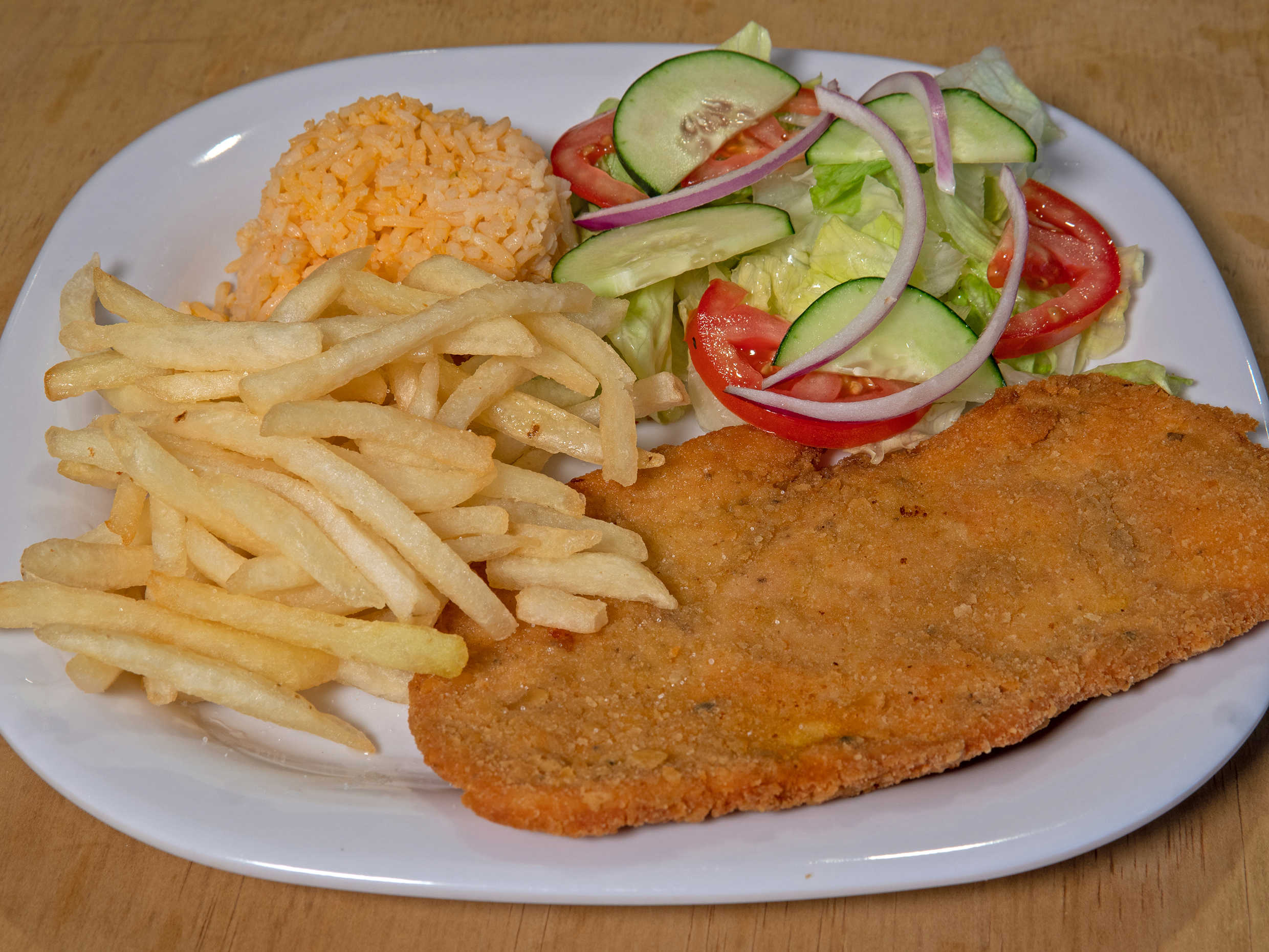 Milanesa de res o pollo empanizada acompañada de dos guarnición a elegir.