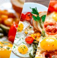 Huevo al gusto revuelto con jamón o estrellado acompañado de frijoles refritos.