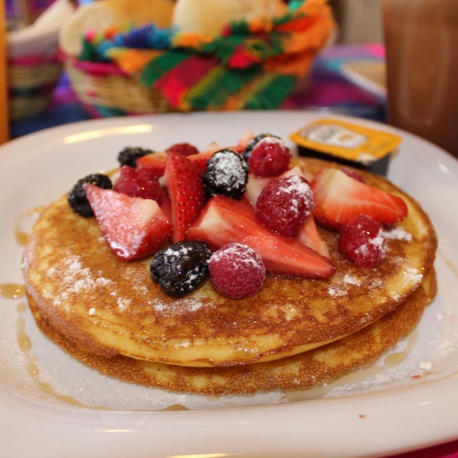 Deliciosos hot cakes (2 pz) acompañados de tus ingredientes favoritos a elegir..