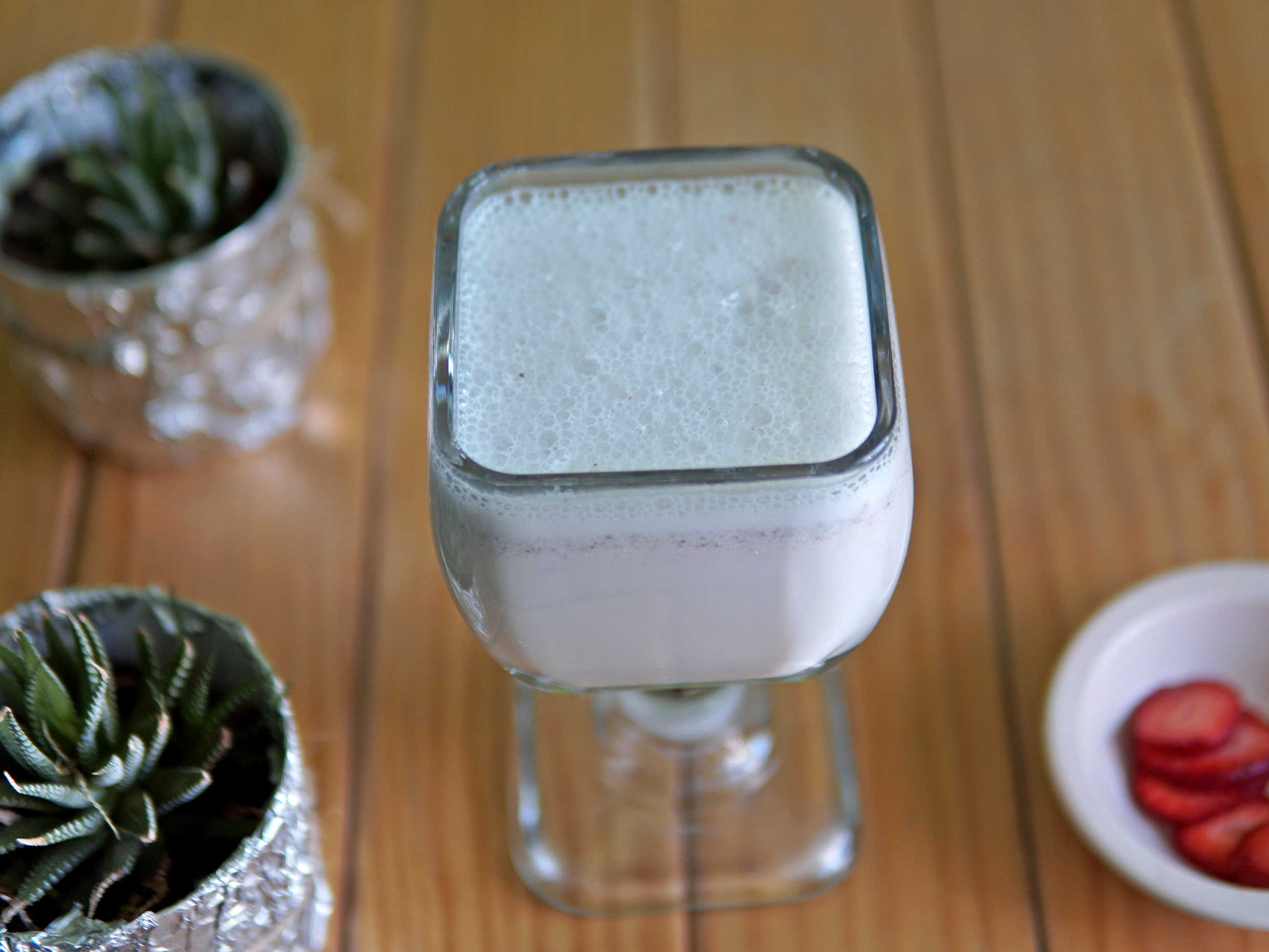 Leche, plátano, fresa, azúcar, vainilla 500 ml.
