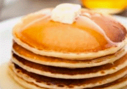Hot cakes, acompañado de miel maple, mermelada de fresa.