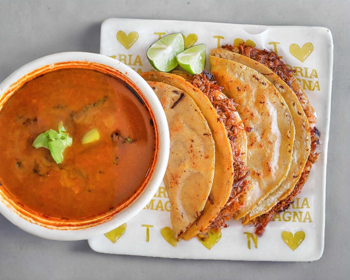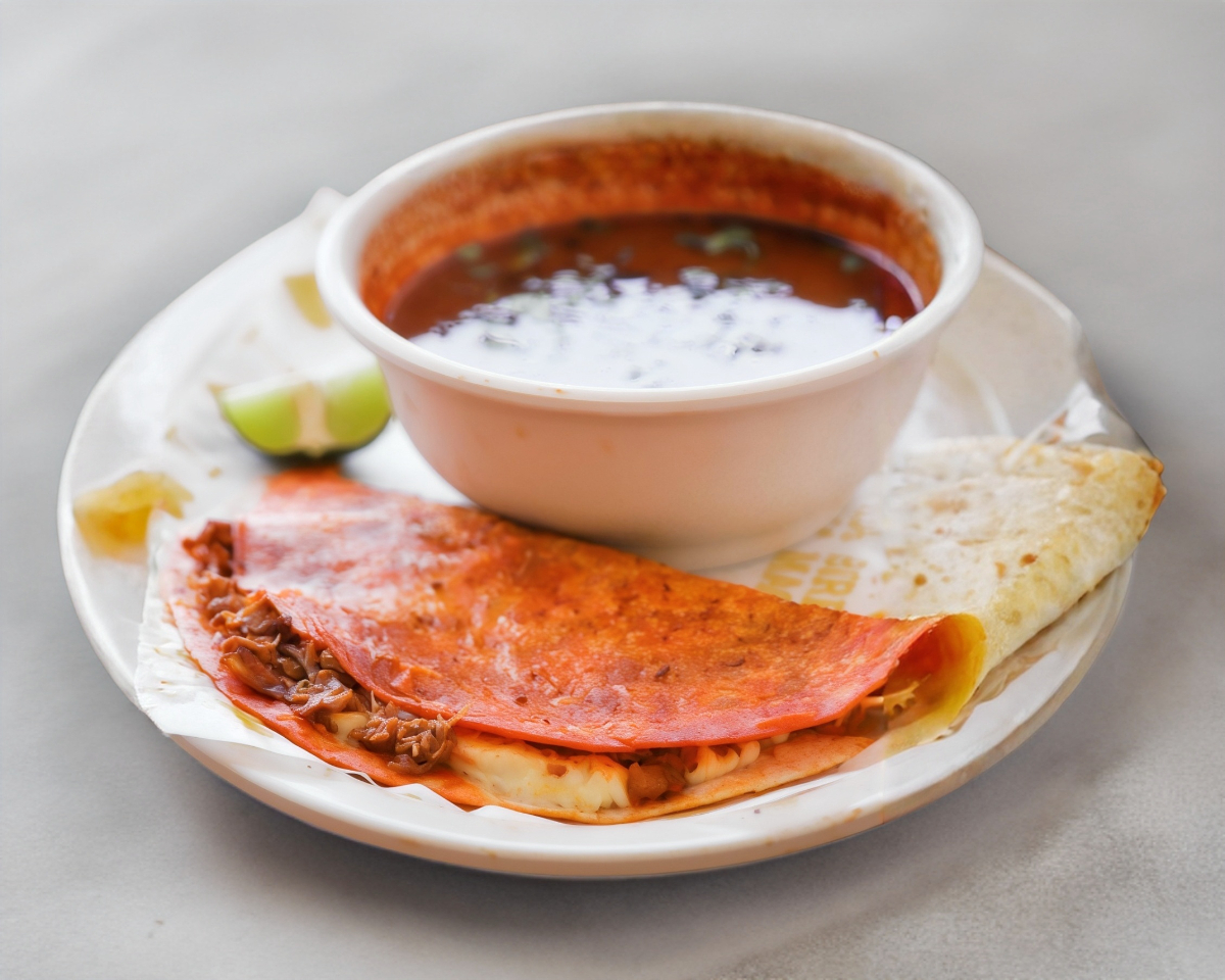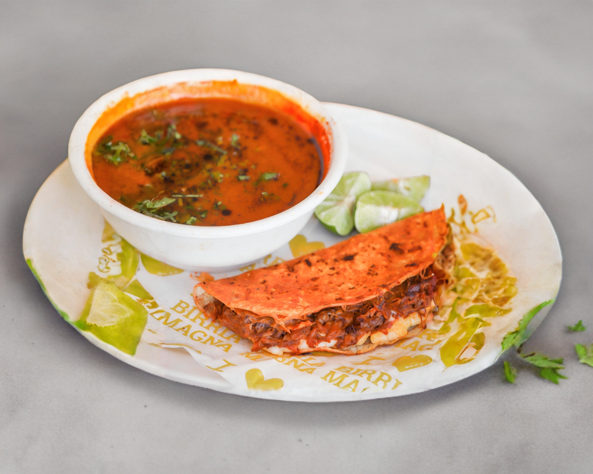 Autentica Quesabirria de Maíz de Nuestra ¡Birrealmente! Deliciosa Birria. Incluye: Salsa, limón y Verdura.