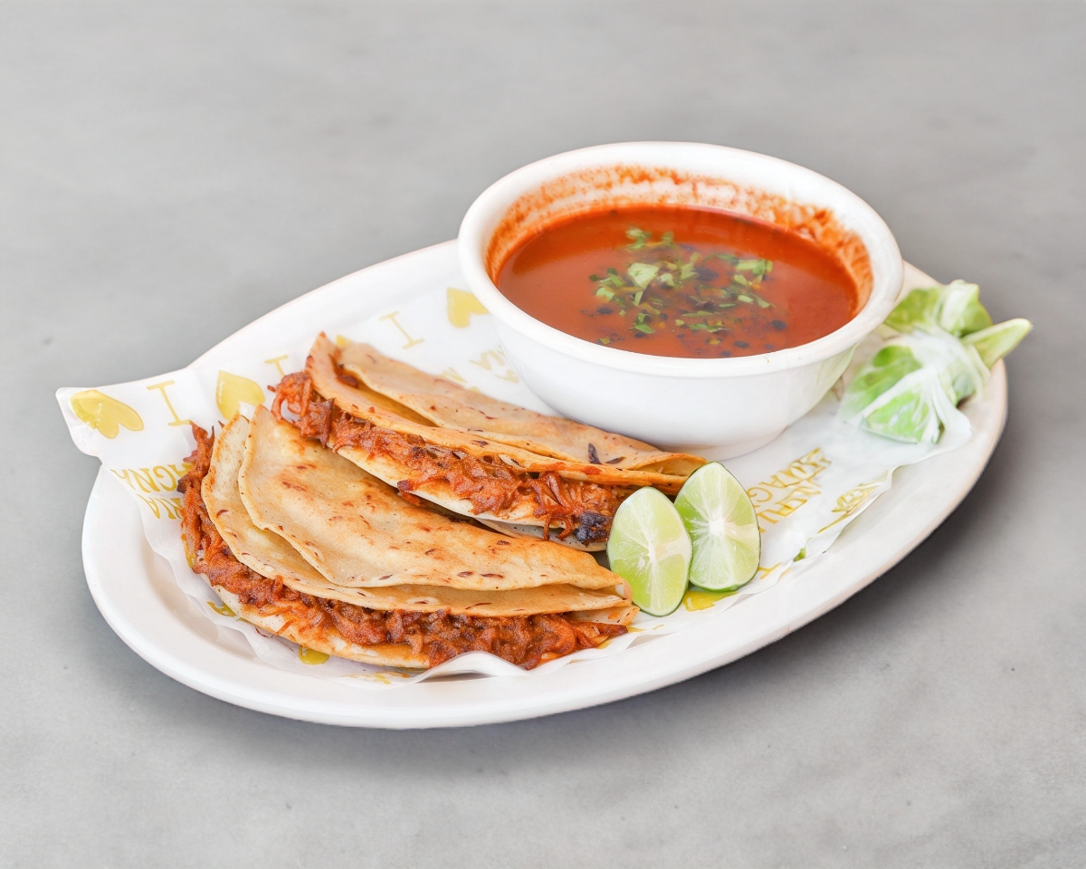 Autentica QuesaBirria de Harina de Nuestra ¡Birrealmente! Deliciosa Birria. Incluye: Salsa, limón y Verdura.