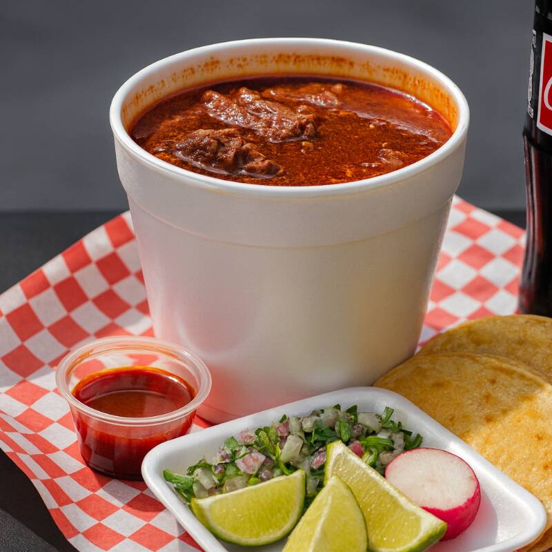 Medio KG de Nuestra ¡Birrealmente! Deliciosa Birria. Incluye: Consome, Tortillas, Salsa, limón y Verdura.