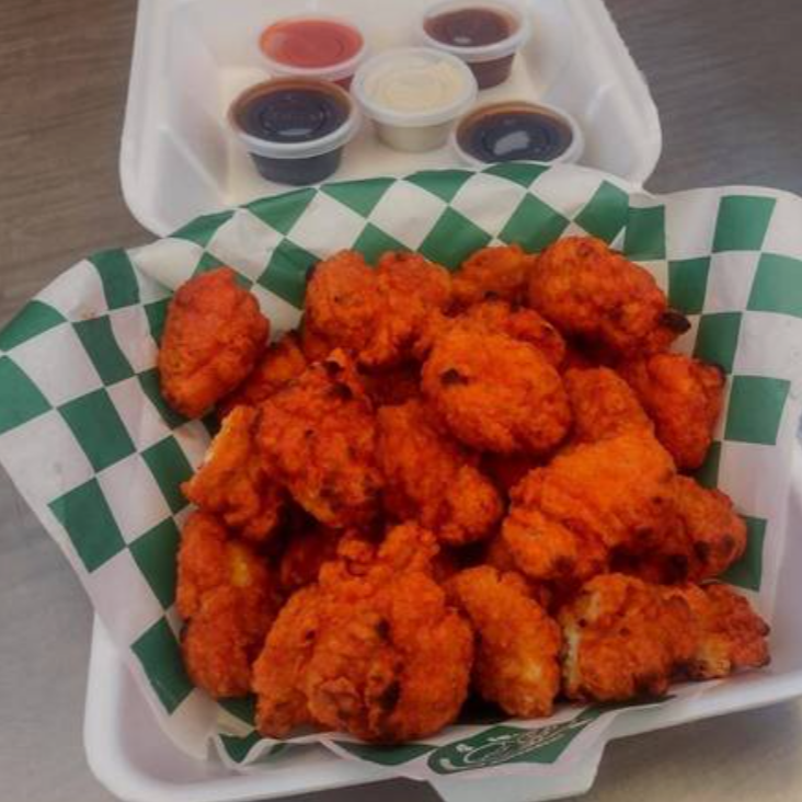 1 Orden boneless ( BBQ, BBQ picante, búfalo o mango habanero) 1 orden gajos de papa o papas crisscut 1 refresco 1.5 L.