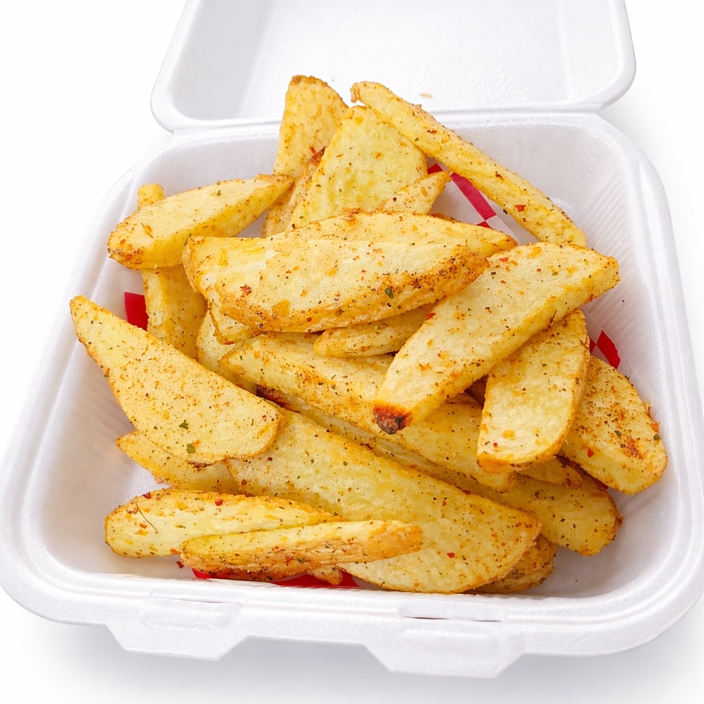Papas En Gajo, Bien Doraditas, Crujientes Por Fuera Y Suaves Por Dentro, Sazonadas Con La Receta De La Casa