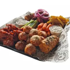 1/2 orden de Vegetales*1 + Aderezos*1 + Alitas Personales*1 + Boneless Personales*1 + Meatballs Personales*1 + Elote Bones*1 + 1/2 francesas*1