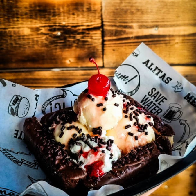 Deliciosos Brownies con helado de vainilla