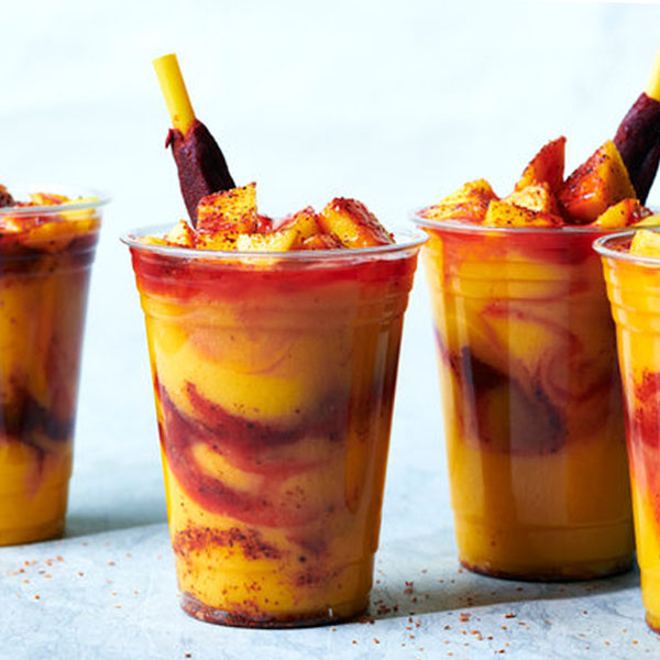 Delicioso raspado de tu sabor preferido con chile y chamoy.