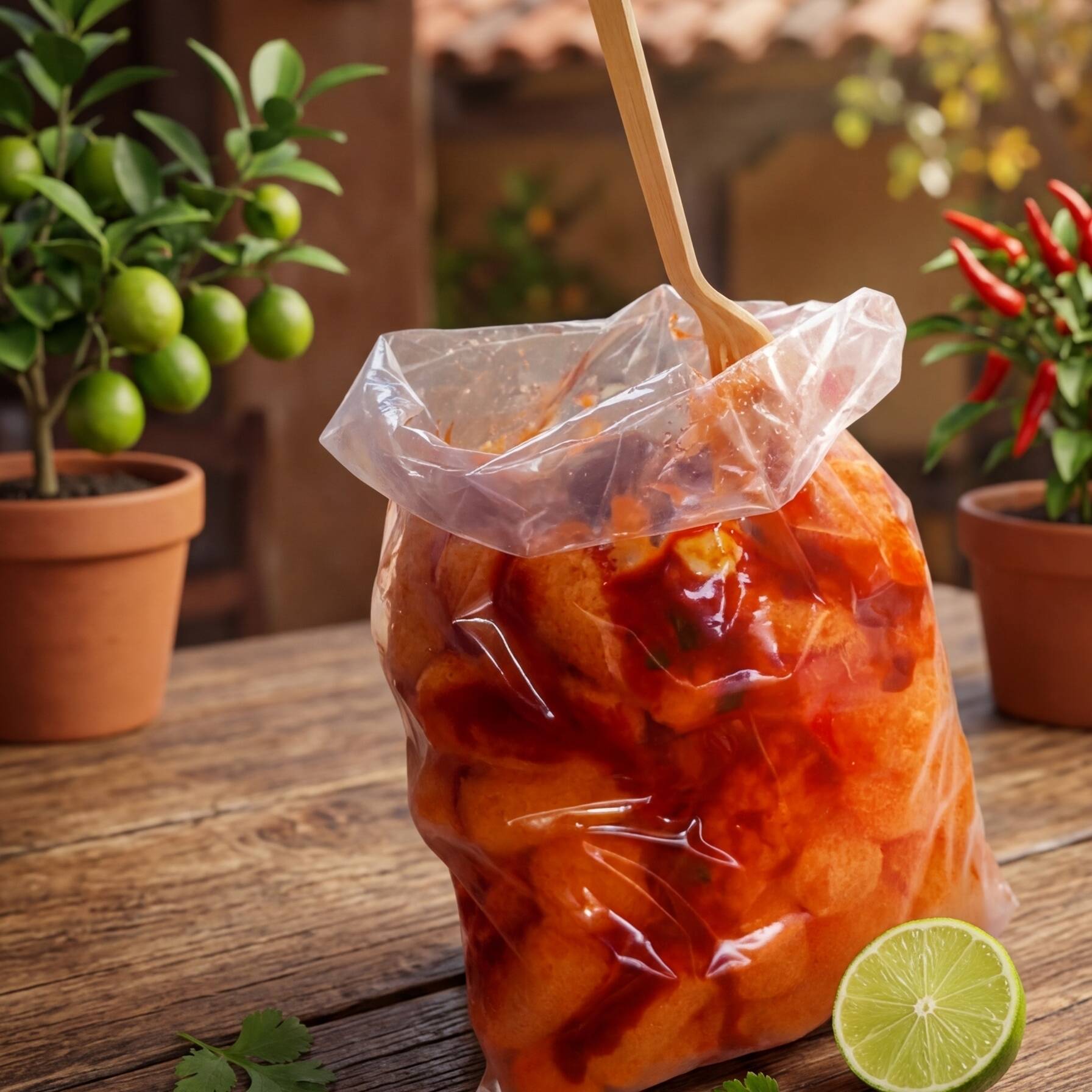 Chetos preparados con salsa casera Valentina y crema