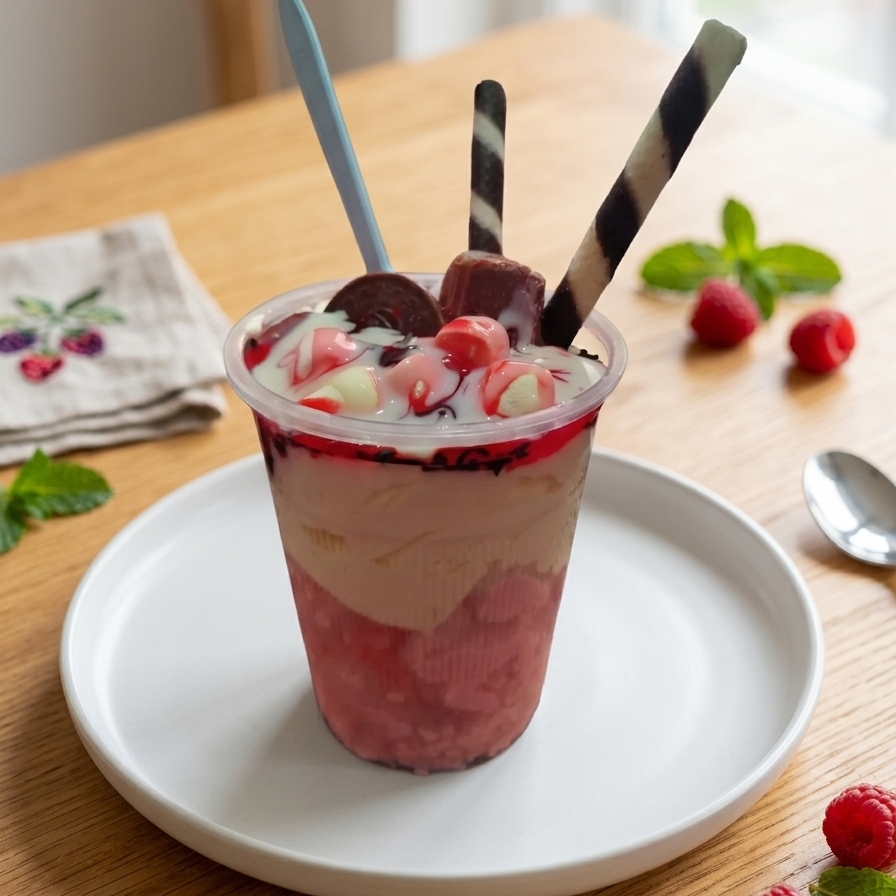 Vaquita preparada diferentes sabores acompañada de galletas crema Chantilly chocolate bombones snikers