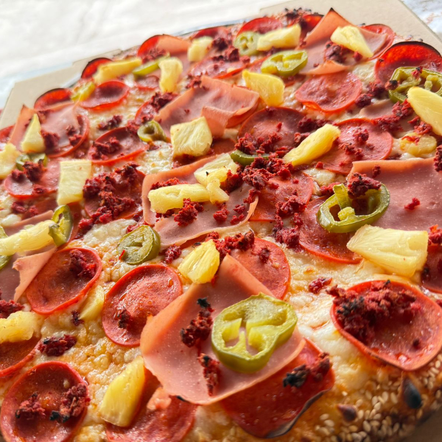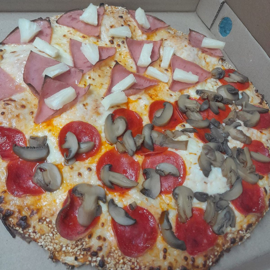 Nuestra pizza más completa: una explosión de sabores con variedad de vegetales y carnes seleccionadas para el hambre más exigente, aprox 14 pulgadas (30 cm).
