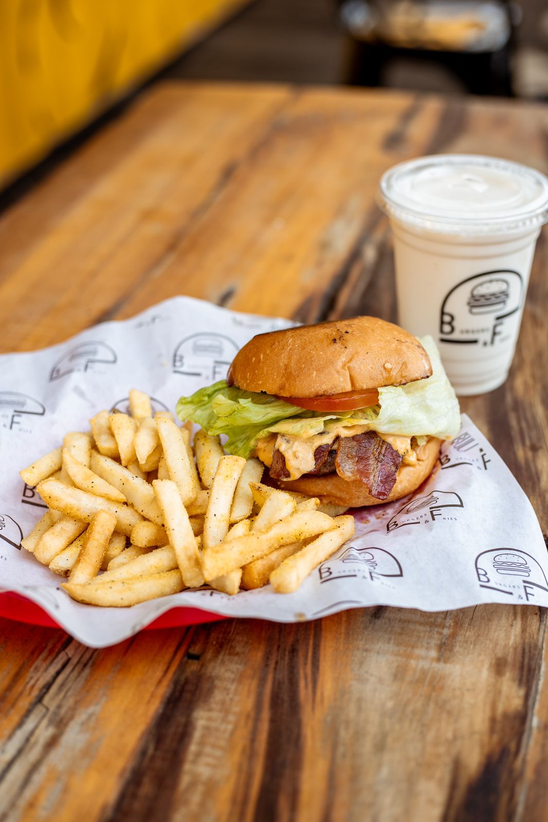 4 Hamburguesas dobles con papas a la francesa cada una.