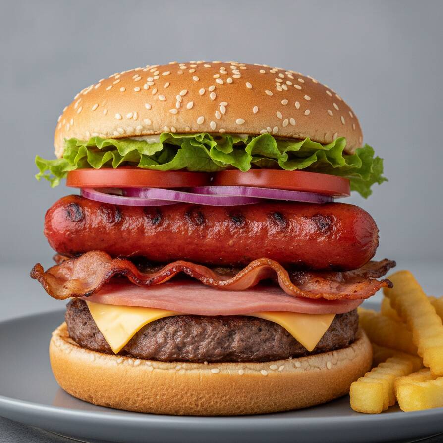 HAMBURGUESA CON SALCHICHÓN