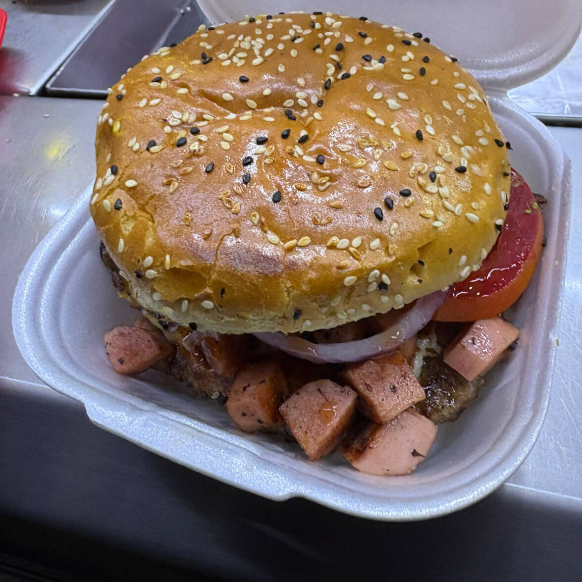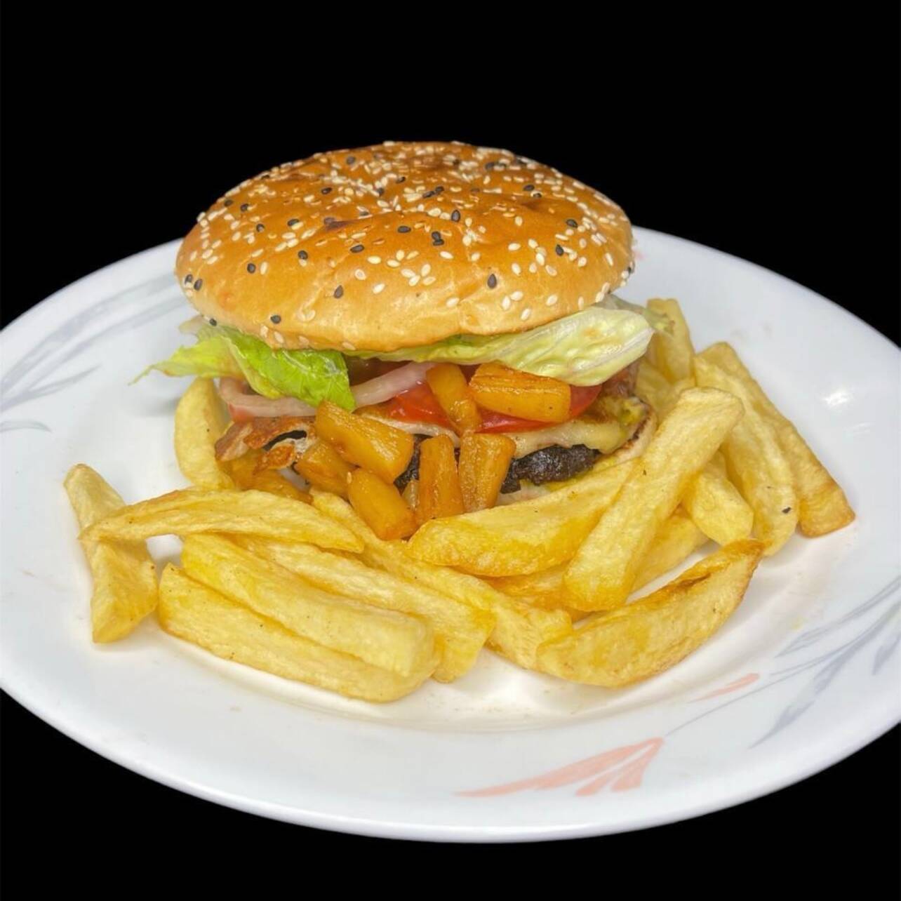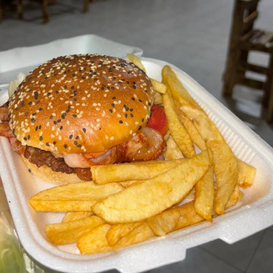 X2 80g carne sasonada, jamon, queso mozarella, queso cheddar, jitomate, lechuga, aguacate, cebolla,pan con ajonjoli, mayonesa, mostaza y salsa catrup.