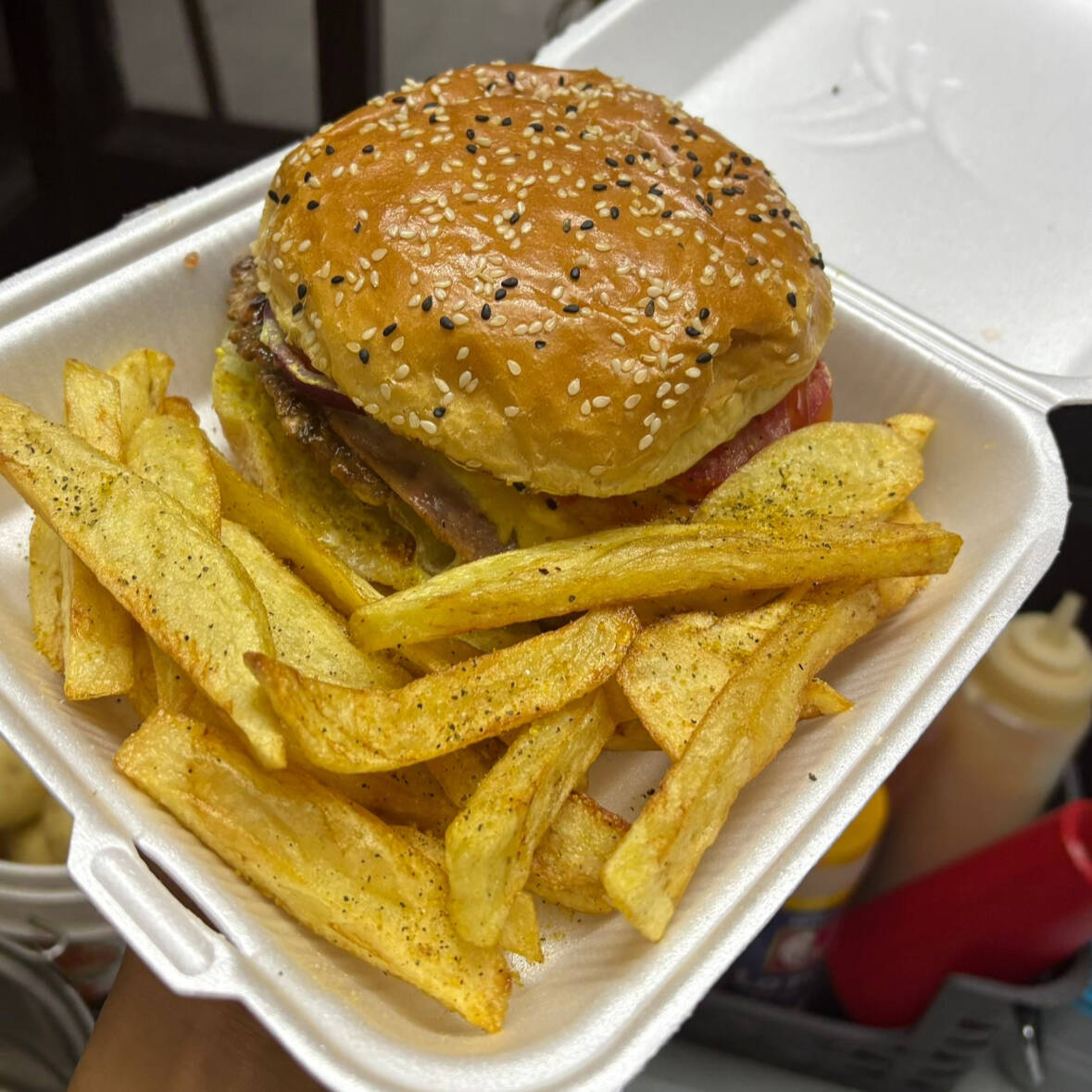 Hamburguesa con Tocino*1 + orden de papas fritas*1