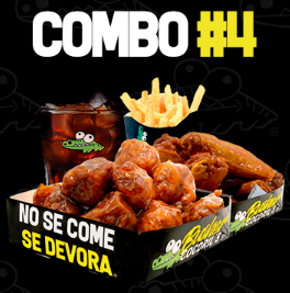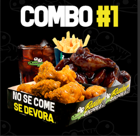 Hamburguesa a elegir, 250 g de alitas o boneless, y refresco a elegir.
